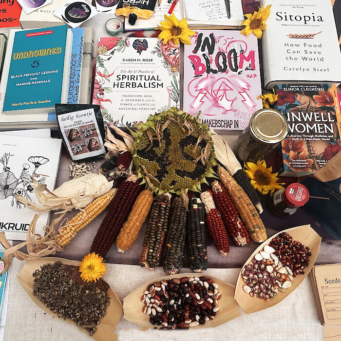 Four Sisters is a public garden and a community project initiated by Marija Šujica, Müge Yilmaz and The Beach i.s.m Emiel Wolf. In 2021 it grew in the shape of a labyrinth in the Nieuw-West district of Amsterdam (Tuinen van West). The garden created a contextual space for art, social gatherings, and performances during the summer of 2021. In 2023, we are making a new edition with new experiments: working with the wilderness. While we still work with the usual crops such as pumpkins, corn and newly potatoes, we are paying more attention to what is already there: the wild.