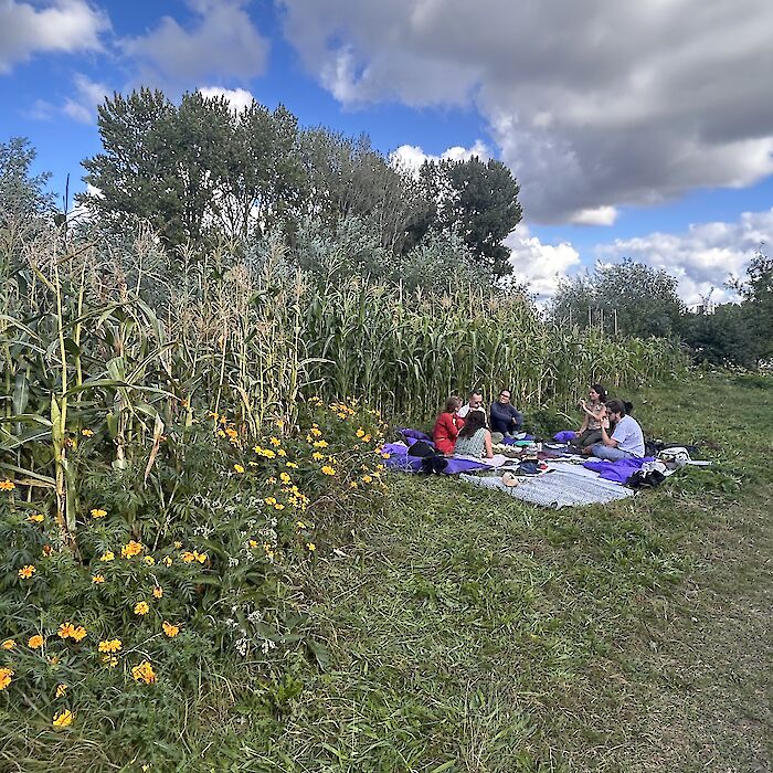 Samen maken we een eetbaar labyrint aan de rand van de stad. We leren er door te doen: voedsel te verbouwen op een elkaar-ondersteunende manier, zorgen voor onszelf zoals we voor het land zorgen, maken het belang van biodiversiteit zichtbaar, en nieuwe verbindingen maken tussen lokale kunstenaars, boeren, permaculturisten en bewoners.