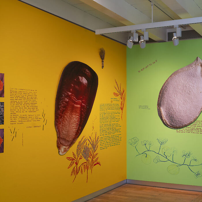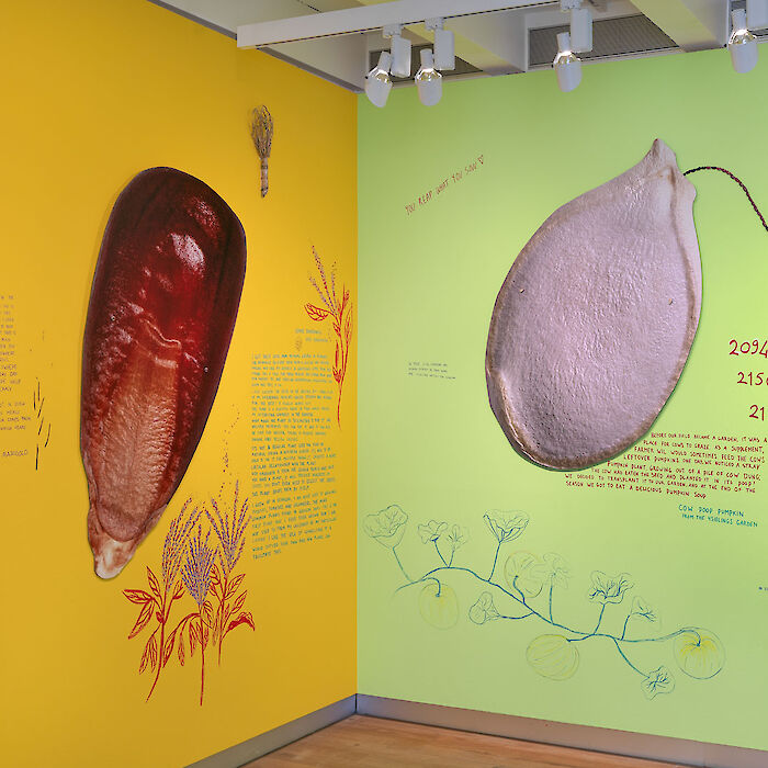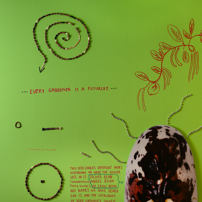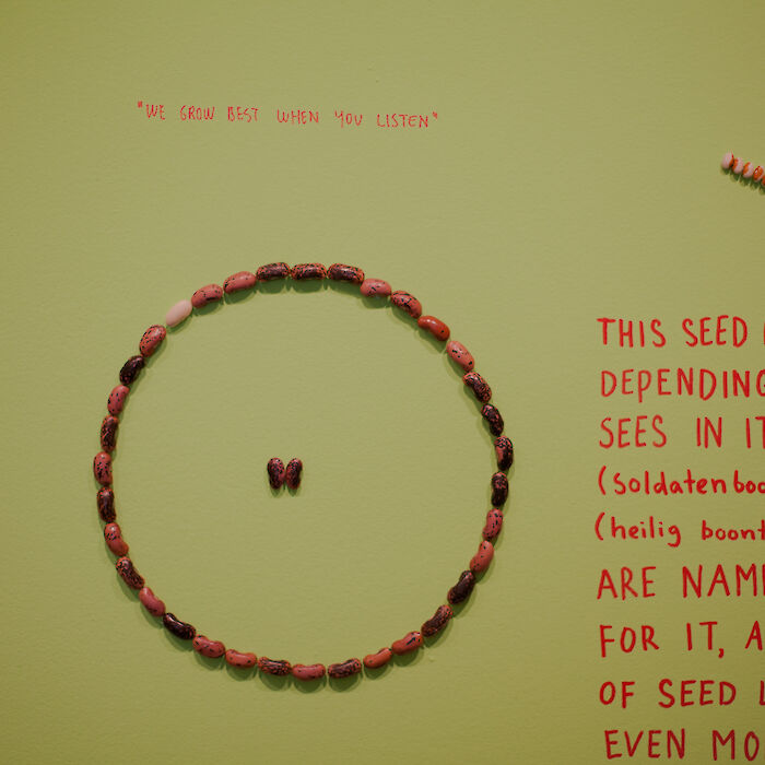 De titel van het project is geinspireerd op de three sisters methode (ook wel milpa genoemd), een Latijns Amerikaanse landbouwtechniek waarbij mais, bonen en pompoenen in symbiose leven. De bonen groeien aan de mais en brengen voedingsstoffen in de bodem, de pompoenen zorgen voor schaduw en houden onkruid weg. We voegen hier zonnebloemen aan toe om bijen aan te trekken en de andere planten te beschermen tegen de wind - vandaar de naam Four Sisters. Ook zijn we geinspireerd door Agnes Denes, wiens project Wheatfield (1982) en andere ecologische installaties een referentiekader bieden aan Four Sisters.